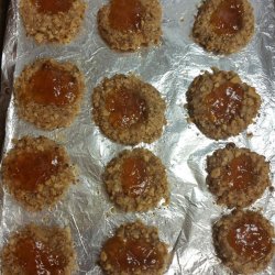Remove cookies from oven. With thumb, dent each cookie. Put jelly or preserves in each thumbprint. Bake for another 8 minutes.