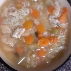 1Combine chicken broth, onion, celery, carrots, parsley, pepper, thyme, and bay leaf in a Dutch oven; bring to a boil. Reduce heat to low; simmer until the onion and celery begin to soften, 10 to 15 minutes. Stir chicken into the simmering broth; cook until the chicken is no longer pink in the middle, 5 to 10 minutes. Remove and discard bay leaf. Stir rice and lime juice into the broth; cook and stir just until rice is hot and grains separate, about 1 minute. Garnish with lime slices.