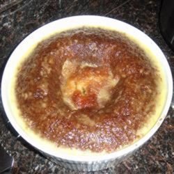 5Remove pudding from the oven, pierce several times with a skewer or fork, and pour the hot cream mixture immediately over the pudding. Serve hot or cold.