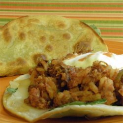 "I serve this as a build-your-own taco salad meal. Start with lettuce, tomatoes, sour cream, shredded cheddar, and crushed tostada chips. Top off with the piping hot meat mixture, kinda toss together, and enjoy!"