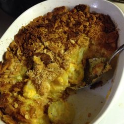 2Boil zucchini and onion in a large pot for about 10 minutes; drain. To the zucchini and onion add the butter, cheese, eggs, salt and pepper. Transfer to prepared baking dish and sprinkle cracker crumbs on top.