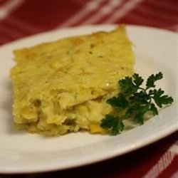 "This recipe was created in response to a few picky veggie eaters in my household who love corn casserole, but aren't fond of some garden favorites. This gets gobbled up every time! No one ever guesses at the amount of veggies inside this firm but creamy yumminess! This great potluck pleaser freezes well. I used freshly chopped squash and zucchini as well as frozen chopped veggies (originally from my garden)."