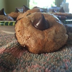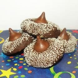 3In a small bowl, slightly beat the remaining egg whites. Roll dough into walnut sized balls. Dip balls into the egg whites, then roll in sugar (or chopped nuts if desired). Place the cookies onto the prepared cookie sheets and make a small indentation in the center with your thumb. Bake for 10 to 12 minutes in the preheated oven. When the cookies come out, press a chocolate kiss into the center of each one. Let stand, and then spread the chocolate candy like frosting, if desired.