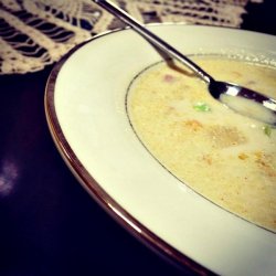 2Mix whipping cream, creamed corn, frozen corn kernels, milk, water, chicken bouillon, garlic powder, onion powder, and ground ginger into onion-potato mixture; cook over medium-high heat until potatoes are softened, 30 to 45 minutes. Season soup with salt and pepper.