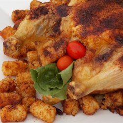 3Roast in the preheated oven until skin is browned, the juices run clear, and an instant-read meat thermometer inserted into a chicken thigh, not touching bone, reads at least 160 degrees F (70 degrees C), about 2 hours.