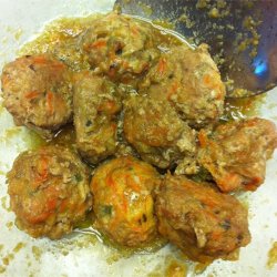 4Stir the reserved water from the mushrooms, the applesauce, 1/4 cup water, maple syrup, 2 tablespoons of soy sauce, and brown sugar together in a bowl; pour over the meatballs. Cover the dish with aluminum foil.