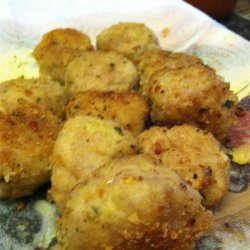 1Mix the pork, egg, Parmigiano-Reggiano cheese, onion powder, tarragon, and salt until everything is well incorporated; form into meatballs the size of a tablespoon. Spread bread crumbs into a shallow dish; roll meatballs in bread crumbs to coat.