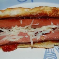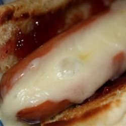 1Melt the butter in a flat-bottomed pan over medium-high heat. Slice the hot dog length-wise about 3/4 of the way through; place onto the pan with the cut-side down along with the hot dog bun. Cook both until golden brown; flip and cook the other side until golden brown. Remove the bun from the pan and spread the strawberry jam over the inside of the bun; set aside. Meanwhile, top the hot dog with the slice of Swiss cheese. Place a lid over the hot dog and continue cooking until the cheese has melted, about 1 minute. Place the hot dog in the bun to serve.