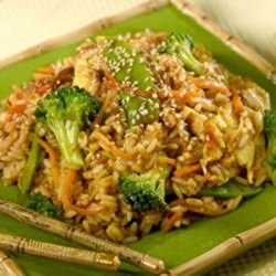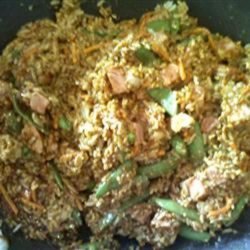 "A twist on the average fried rice - a culmination of some of my favorite Asian flavors thrown into a common dish. This recipe is very easy to adjust according to personal tastes; you can make it about as strong or as mild as you prefer. Compliments Teriyaki beef well, or can be easily modified into a stir-fry meal."