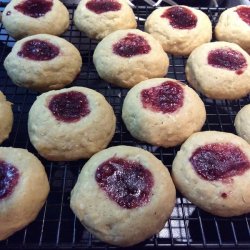 3Roll the dough into walnut-sized balls and place 2 inches apart onto ungreased baking sheets. Make an indentation in each cookie using a 1/2 teaspoon size measuring spoon. Fill each cookie with the raspberry jam.