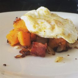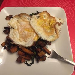 2Heat olive oil in skillet over medium heat; cook and stir onion in the hot oil until slightly softened, 3 to 4 minutes. Stir sweet potato, ham, cinnamon, cayenne pepper, and salt into onion; cover skillet with a lid. Cook sweet potato mixture, stirring occasionally, until sweet potatoes are cooked through, about 10 minutes; sprinkle with brown sugar. Cook and stir until brown sugar is dissolved, 1 to 2 more minutes.