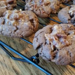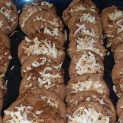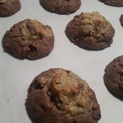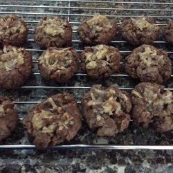 "A chewy chocolate cookie topped with a German chocolate icing. Very good, and they freeze wonderfully if you have any left to freeze. Do not substitute canned frosting or you will be disappointed."