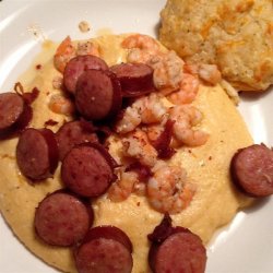 3Spread the cheese grits on a warm platter. Top with shrimp mixture.