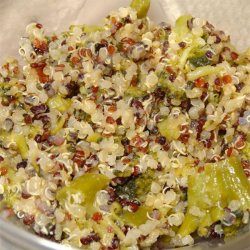 1Combine broccoli, broth, and quinoa in a saucepan; bring to a boil. Reduce heat to medium-low, place a cover on the saucepan, and cook at a simmer until the broth has been absorbed and the quinoa is tender, 15 to 20 minutes.