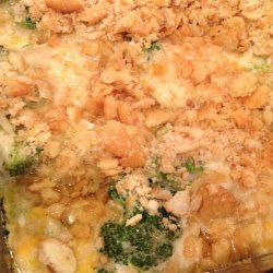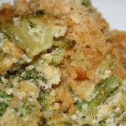 2Beat the eggs in a mixing bowl; whisk in the mayonnaise, cream of mushroom soup, broccoli, Cheddar cheese, onion, and butter. Spoon into a 2 quart casserole dish; sprinkle with the crushed crackers.