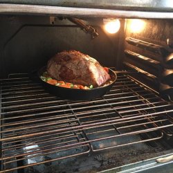 4Roast meat in the preheated oven until an instant-read meat thermometer inserted into the middle reads 120 degrees F (49 degrees C), about 2 1/2 hours.