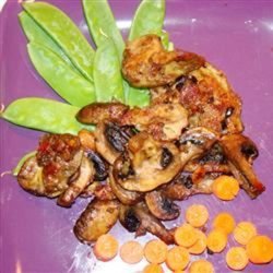 3Cook coated chicken livers in bacon fat covered over medium high heat until almost done, about 17 to 20 minutes. Add bacon strips and cook together until chicken is cooked through and juices run clear.
