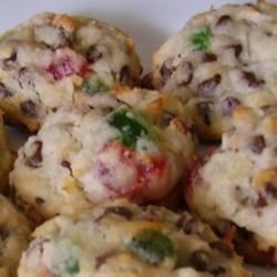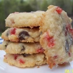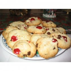 2In a large bowl, cream shortening and sugar until light and fluffy. Beat in egg and almond extract. Stir in flour, baking powder and salt. When the mixture is creamy, stir in chocolate chips, coconut and cherries. Drop the dough by teaspoonful onto a greased cookie sheet.