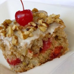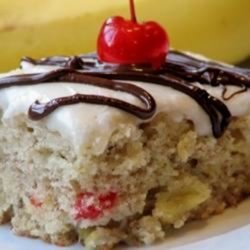 "I got this recipe form my mother-in-law. Bananas, crushed pineapple and maraschino cherries are all baked into a cake. A light, buttery frosting is applied, and the cake is cut into bars for snacking."
