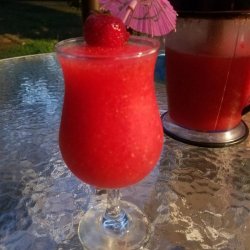"Decorate this blended strawberry daiquiri with a fresh strawberry for an extra presentation touch. Serve in a martini glass with a straw."