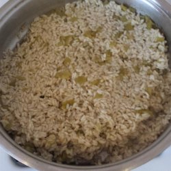 1Heat vegetable oil in a saucepan over medium heat. Stir rice in hot oil until coated; add green chiles and continue cooking until rice begins to brown lightly, 2 to 3 minutes. Season rice with pepper. Pour broth into the saucepan; bring to a boil. Reduce heat to low, place cover on the saucepan, and cook until the broth is absorbed and the rice tender, about 20 minutes.