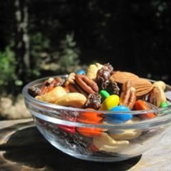 Combine the cashews, peanuts, almonds, raisins, and chocolate in a bowl. Store in an airtight container to store.