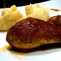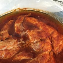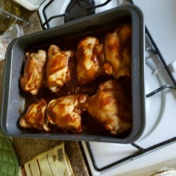 2Place the chicken thighs into an oblong baking dish, and pour the sauce over them. Cover tightly.