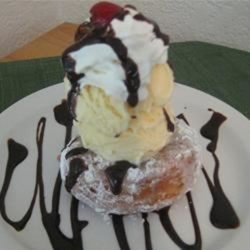 "This recipe is so delicious. It is essentially a sundae served on top of a grilled donut. I created this after having it at a restaurant. This is also good with strawberry or cinnamon ice cream."