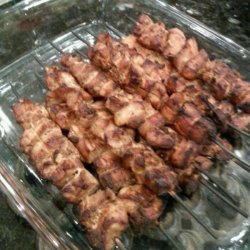 1In a bowl, mix soy sauce, tomato sauce, peanut oil, garlic, black pepper, and cumin. Place chicken into the mixture, and stir to coat. Cover, and marinate in the refrigerator for at least 15 minutes, but not overnight. This will make the meat too dark.