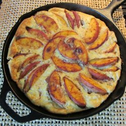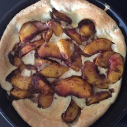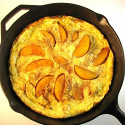 4Beat eggs, milk, flour, vanilla extract, salt, and nutmeg together in a bowl until batter well-combined but a little lumpy; pour into skillet. Top batter with the peach mixture.