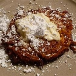3Heat oil in a large skillet to 375 degrees F (190 degrees C). Fry patties in batches until lightly browned, about 3 minutes per side. Spread with butter; sprinkle with powdered sugar and serve hot.