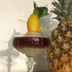 "Traditional affogato is vanilla gelato topped with espresso, but here a tropical sorbet forms an island in a coffee-flavored rum sea. Rum-based Tia Maria® coffee liqueur is preferred for its wonderful rich flavor."