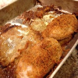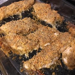 4Dip each chicken breast in the garlic butter to coat, then press into the bread crumb mixture. Arrange the coated chicken breasts in a 9x13 inch baking dish. Drizzle with any remaining butter and top with any remaining bread crumb mixture.