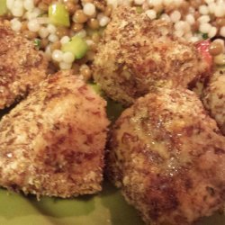 4Combine the parsley, thyme, red pepper, bread crumbs, wheat germ, basil and pepper. Stir in the oil with a fork and mix well to distribute evenly. Pour seasoning mixture into a resealable plastic bag and toss the chicken pieces to coat.