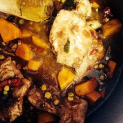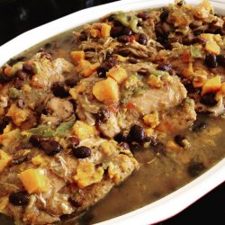 2Arrange the chicken in the bottom of a slow cooker. Place the sweet potatoes, red bell pepper, and black beans on top of the chicken. Mix together the chicken broth, 1/4 cup cilantro leaves, salsa, cumin, allspice, and garlic together in a bowl; pour into the slow cooker. Set slow cooker to LOW and cook for 4 hours. Garnish with lime wedges to serve.