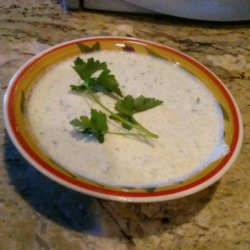 "Easy dressing for gyros or Greek salad. Also makes a nice dipping sauce for Veggies. HINT: Tastes best when chilled for at least 1 hour after preparation."