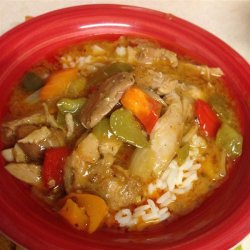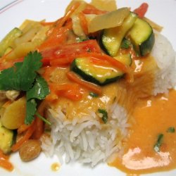 "This is a quick and easy curry stir-fry made with chicken, zucchini, red bell pepper and carrot. Coconut milk and curry paste make an irresistible sauce. No need to go out to eat, as this dish is ready in about 20 minutes!"