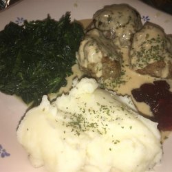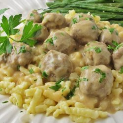 "Our family's traditional Christmas recipe, frequently doubled and kept warm in a crock pot. Worth the effort, and the meatballs are even better the next day! Reserve brown gravy and add sour cream to it the day you serve the leftovers."