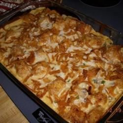"This is a recipe everyone in the family will love. Vegetarian or not, the combination of tater tots, cheese, and mushroom soup will drive your taste buds crazy!"