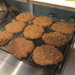 2Cream butter or margarine with the brown sugar until light and fluffy. Beat in the eggs and mix well. Stir in the salt, cinnamon, baking powder, boiling water, baking soda and flour. Mix to combine. Stir in the oats.