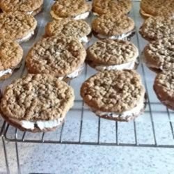 3Drop cookies onto the prepared baking sheets. Bake at 350 degrees F (175 degrees C) for 10 to 12 minutes. Let cookies cool then make sandwiches from two cookies filled with Whoopie Pie Filling.