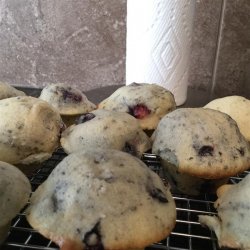 3Stir dry ingredients into egg mixture alternately with sour cream. Gently fold in blueberries. Scoop batter into prepared muffin cups.