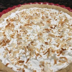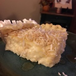 3In a medium saucepan, combine the half-and-half, eggs, sugar, flour and salt and mix well. Bring to a boil over low heat, stirring constantly. Cook, stirring constantly, for 2 minutes more. Remove the pan from the heat, and stir in 3/4 cup of the toasted coconut and the vanilla extract. Reserve the remaining coconut to top the pie.