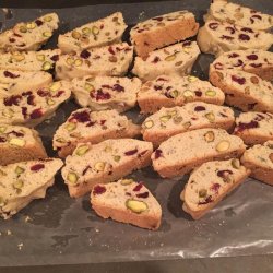 "The red and green make a great Christmas cookie. Have used other nuts instead of pistachios with success. If your pistachios are salted, omit the 1/4 teaspoon salt from the recipe."