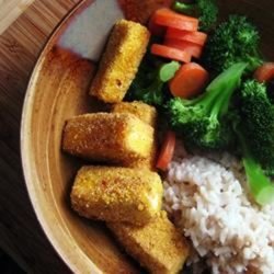 "This tofu recipe is completely gorgeous. A former roommate introduced me to some basics with tofu, and over the past few years, I've settled on this ratio of spices and other breading ingredients. The crust on the tofu sticks is tasty and the texture is really wonderful. Serve with a relish or a dip of some sort (I love this with plain yogurt mixed with eggplant brinjal). I usually make this with a cumin-scented rice dish and a garlicky broccoli side."