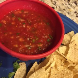 Place the tomatoes, onion, garlic, lime juice, salt, green chiles, and cilantro in a blender or food processor. Blend on low to desired consistency.