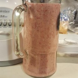 "This is a fast vegan smoothie with a deep pink color and a rich, creamy texture. VERY filling, and perfect for people in a rush in the morning. You don't have to give up a good breakfast when it's this fast to make! I use vitamin fortified soy milk."