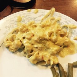4Preheat oven to 350 degrees F (175 degrees C). Butter a 9x13 inch baking dish. Stir noodles into crawfish mixture; pour into prepared dish, and sprinkle with Parmesan cheese.