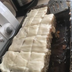 3Bake for 20 to 25 minutes in the preheated oven, until a toothpick inserted into the center comes out clean. Allow bars to cool completely before frosting with the cream cheese frosting.