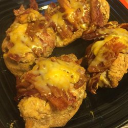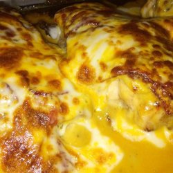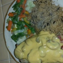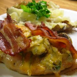 "Marinated chicken breasts broiled with bacon and cheese, then served with sauteed mushrooms and honey mustard dressing. Fantastic way to broil chicken that adds that extra something!"